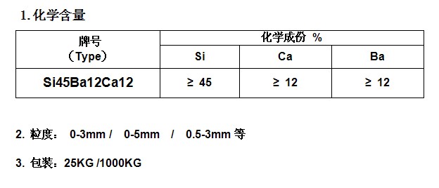 產(chǎn)品用途:硅鋇鈣合金是鋇系合金中高效新型復(fù)合合金,是煉鋼的脫氧劑、脫硫劑、還兼有脫磷的作用;也是鑄造中的孕育劑和變質(zhì)劑。
